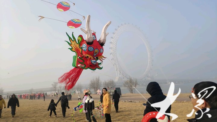 2月10日,农历龙年大年初一,“龙腾盛世 更好潍坊”主题风筝放飞活动在潍坊滨海经济技术开发区白浪河景区举行,众多风筝艺人和群众相聚渤海之眼摩天轮下,放飞巨行龙头蜈蚣风筝,喜迎龙年春节的到来。
