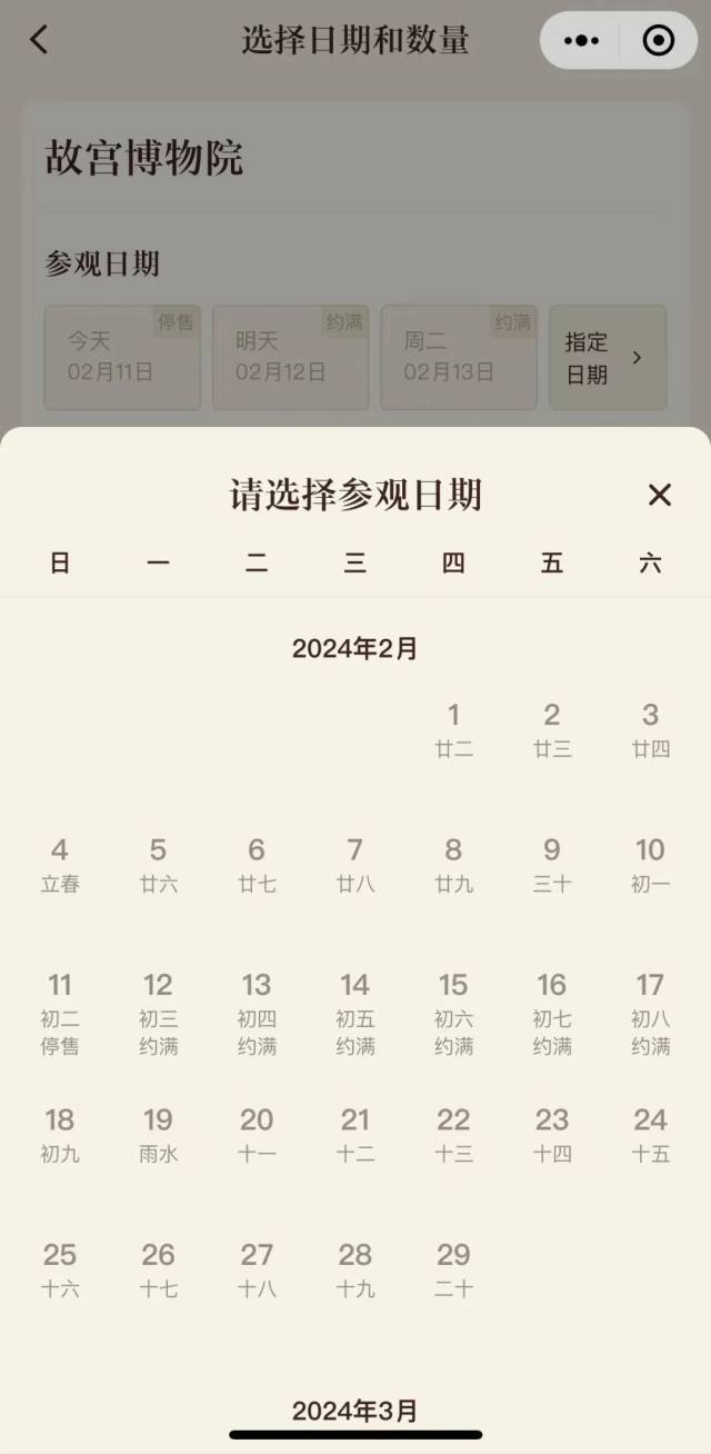 故宫博物院门票预约平台显示,目前到初八门票均已约满。