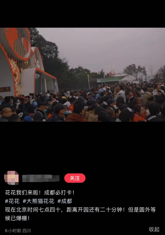 今天早上7点40分,成都大熊猫繁育基地门口已经排起了大长队……