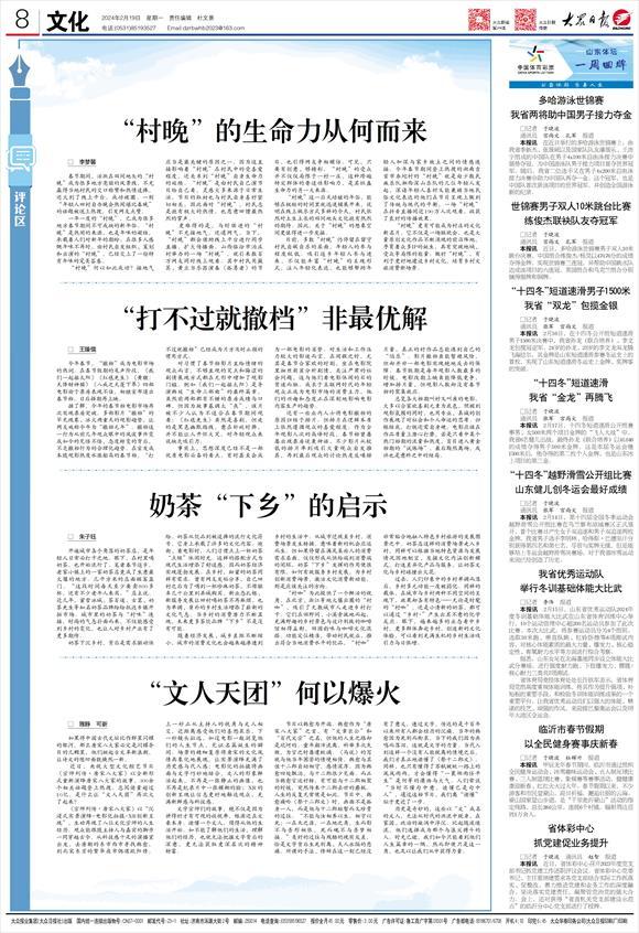 开遍城市各个角落的奶茶店,是年轻人日常必打卡之地。眼下,在村里喝奶茶,也开始流行了。笔者春节返乡,老家小镇上的一家奶茶店竟成了生意最火爆的地方。几平方米的店面顾客盈门。“这段时间每天至少要卖800多杯,还有不少老年人来买。”店主说。近几年,蜜雪冰城、茶百道、古茗、奶茶先生等知名奶茶品牌纷纷抵达乡镇开拓市场。城市里的奶茶与“村味”连接,时尚的气息扑面而来,不仅能感受到乡村的变化,也让人对乡村产业有了更多期待。
