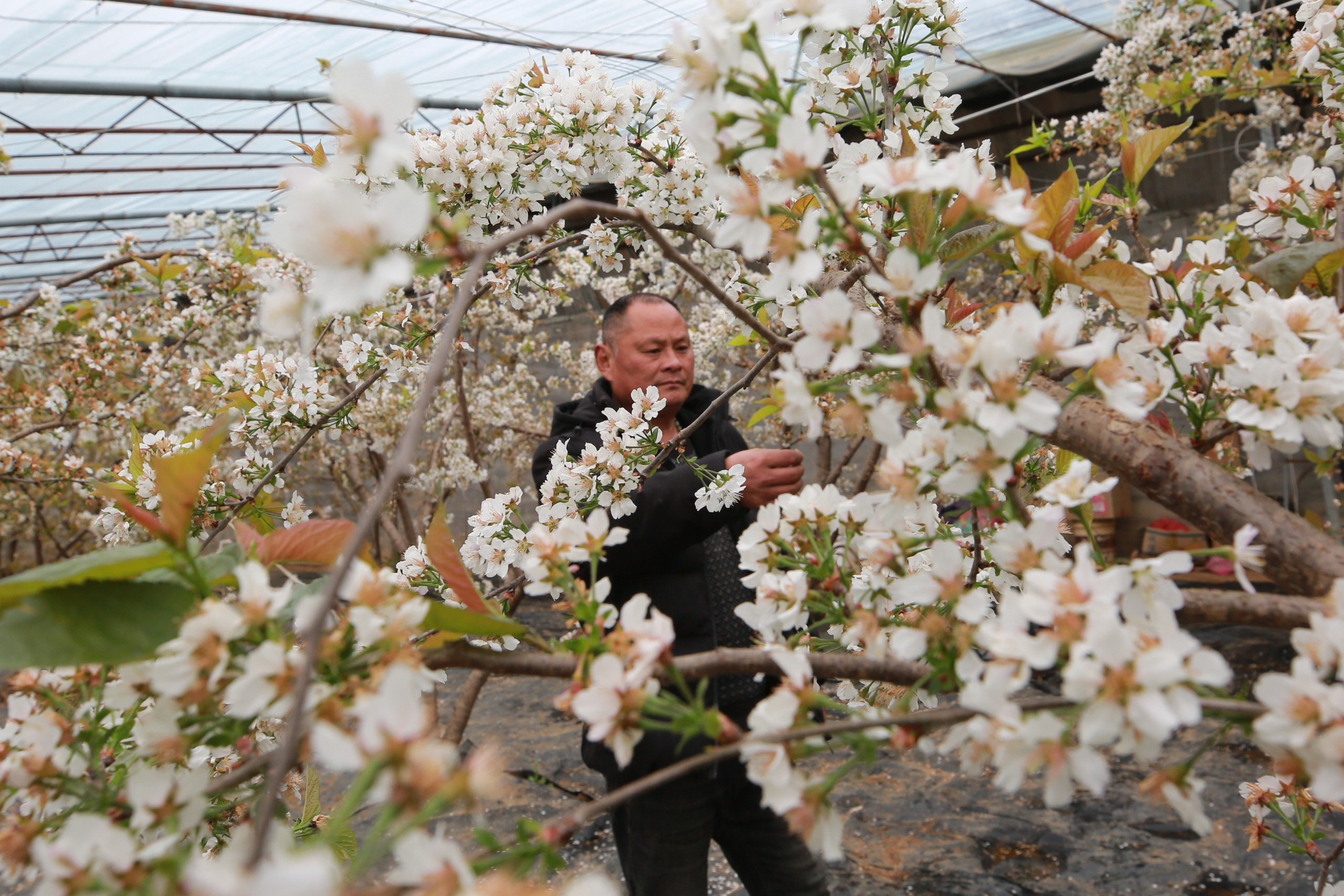 2月19日,在枣庄市台儿庄区涧头集镇穆庄村的冬暖大棚里,村民王继勤正在自家的樱桃大棚疏花疏果,“今年樱桃花开的特别多,您看这满树一簇簇樱桃花,不尽快疏花疏果,后期就会自落一地,影响果品的产量与质量。”他边干边说。