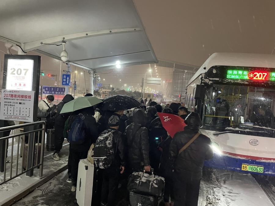 出租汽车行业:通过车载智能终端、微信公众号等渠道发送预警提示信息;组织网约车平台公司对凌晨2时期间火车北站附近的乘客订单予以重点保障支持,做好夜间降雪乘客应急疏运工作。