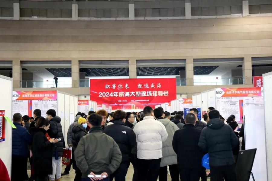 为落实威海市2024年工作动员大会会议精神,聚焦大抓经济主攻方向,把春节期间威海的旅游增量转化为就业增量,更好地为威海经济发展提供有力的人力资源支撑,2月19日,由威海市委组织部和市人社局主办的“职等你来 就选威海”大型招聘会在威海国际展览中心A馆成功举办。威海500多家重点企业参会,提供招聘岗位1.38万个,共有1.8万名求职者现场参会,企业接收简历9611份,现场达成招聘意向3155人,5.7万人次的求职者通过直播送岗等方式线上同步参加了本次活动。