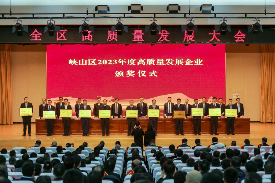 2月18日、19日,省、市接续召开全省高水平开放暨高质量招商引资大会和全市工作动员大会,发出了万物竞发、激昂奋进的发展最强音。2月20日,潍坊峡山区立即召开全区高质量发展大会,动员全区上下拿出“起步就是冲刺、开局就是决战”的精气神,全面吹响二次创业“三年创一流”的冲锋号,奋勇争当绿色低碳高质量发展排头兵。会上对表现优秀的企业、单位及个人进行了隆重表彰,动员全区上下以先进为榜样,奋勇争先,勇创一流,奋力谱写筑造现代化生态田园城市的新篇章。