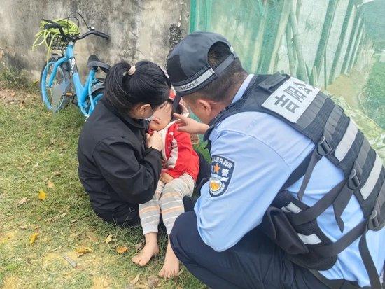 民警不时询问着孩子状况,