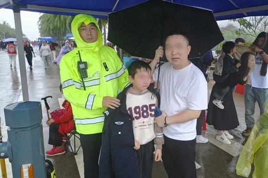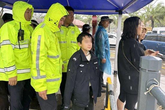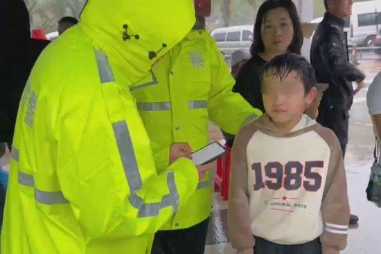 小男孩哭着向路面执勤交警求助,