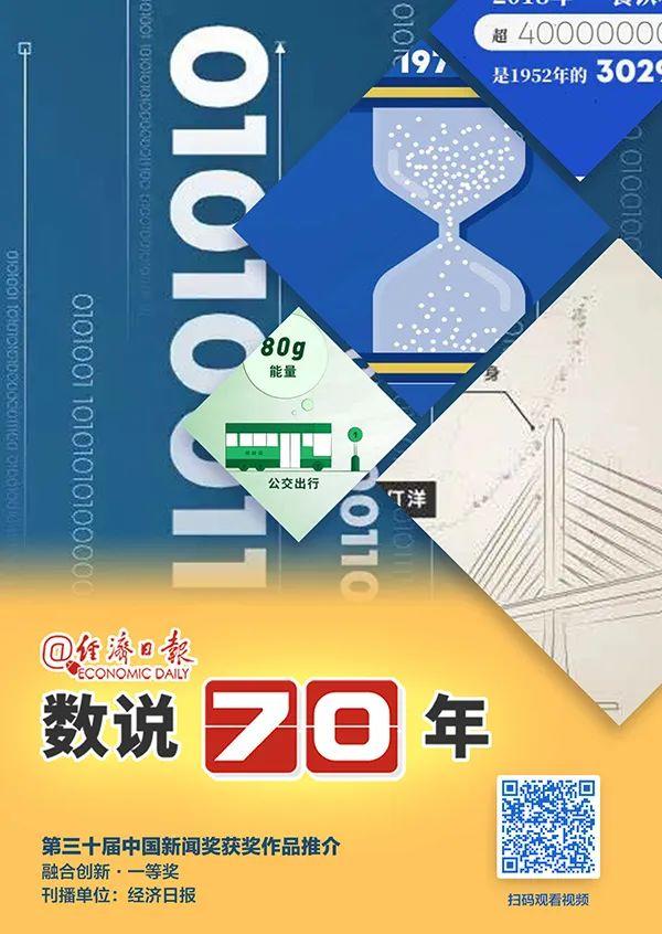 经济日报2021年发布了一组系列报道《数说70年》,从消费、饮食、大国工程、数字经济、生态、外贸等六个方面展现新中国成立70年来的辉煌成就。其最主要的特征就是把数字进行可视化呈现,采用曲线图、树图、气泡图等数据图形,并运用数据建模、数图结合等融媒体制作技术,让静态数字变成了动态视频,在全网获得广泛传播。