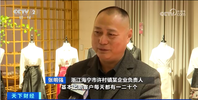 浙江海宁市许村镇某企业负责人 张明强:找我要货的新客户基本上每天都有一二十个,单子很多,还欠着他们发不出去,面料现在接不上,年前的面料全部都卖完了,年后的衣服都是要从织布机上织出来的。