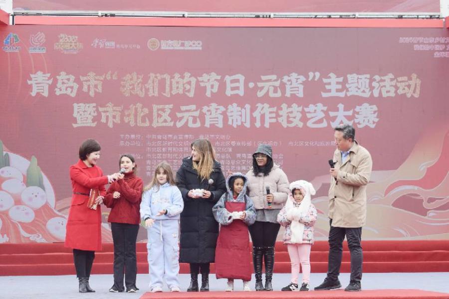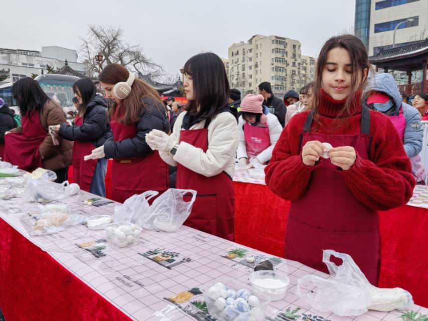舞台上表演精彩连连,现场举办的市北区元宵制作技艺大赛同样热闹非凡。工作人员介绍,此次活动邀请了20位南汤圆、北元宵的代表手作艺人和21位居民代表,现场进行元宵、汤圆制作展示和技艺比拼,展现中华民族精湛的饮食制作技艺。同时,还邀请了20位国际友人体验元宵制作和品尝,共渡喜庆祥和的元宵佳节。