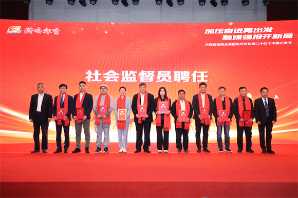 近年来,济南日报报业集团积极发挥智囊团作用,广泛邀请人大代表、政协委员、各界精英成为报业集团的社会监督员,他们积极建言献策,与报业集团同办报、促融合、共前行,为报业集团的改革发展提供了强劲的推动力。为了在更广的领域更好地集聚各界智慧、吸纳各方建言,报业集团新聘、续聘了一批社会监督员。本次活动中,山东省人民药业集团董事长裴树清等社会监督员代表上台接受聘任,接过金灿灿的聘书和沉甸甸的责任。