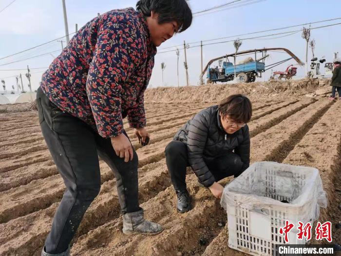 滕州市农业农村局技术人员在田间指导农户种植马铃薯。滕州市委宣传部 供图