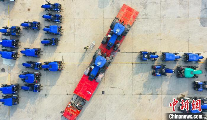 图为潍柴雷沃拖拉机装车发往全国各地。潍柴雷沃 供图