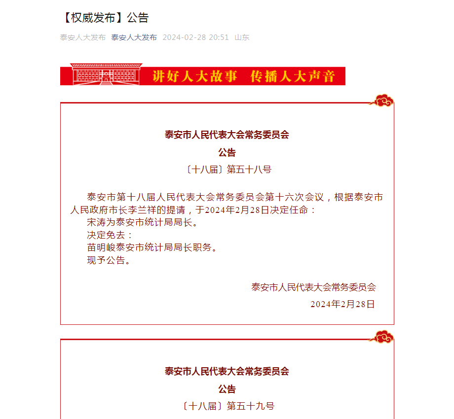 泰安人事变动!宋涛上任,苗明峻卸任