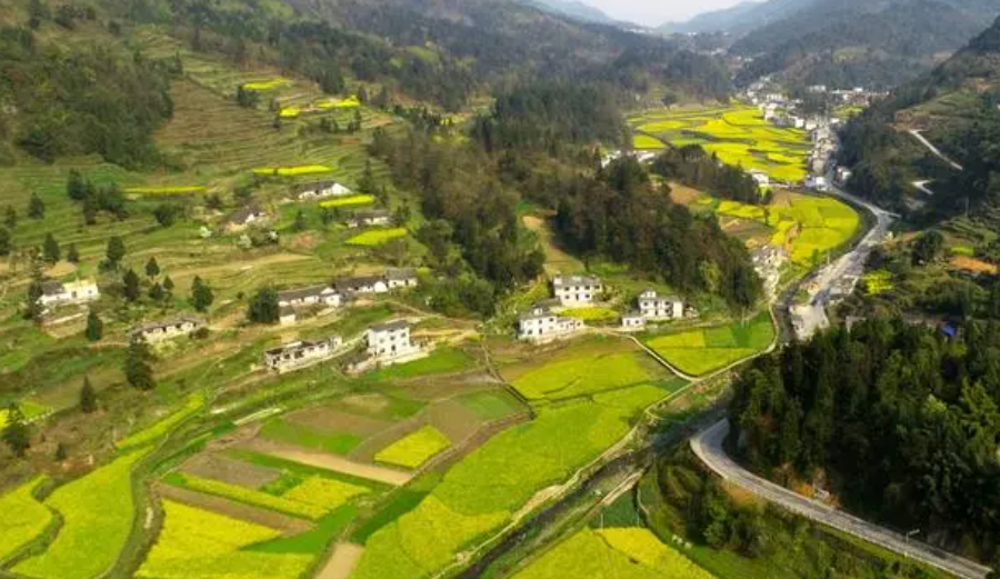 婺源,中国最美乡村,也是中国最有代表性的春天之一,错落有致的油菜花梯田,金灿灿的油菜花盛开,和四周粉墙黛瓦的徽派建筑交相辉映,古村落和油菜花的搭配如诗如画,构成了一幅秀美春日画卷。