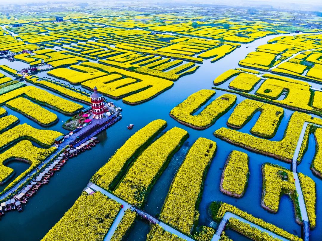 这里的油菜花生长在四面环水的垛田上,是国内极其少见的“水上森林油菜花”。