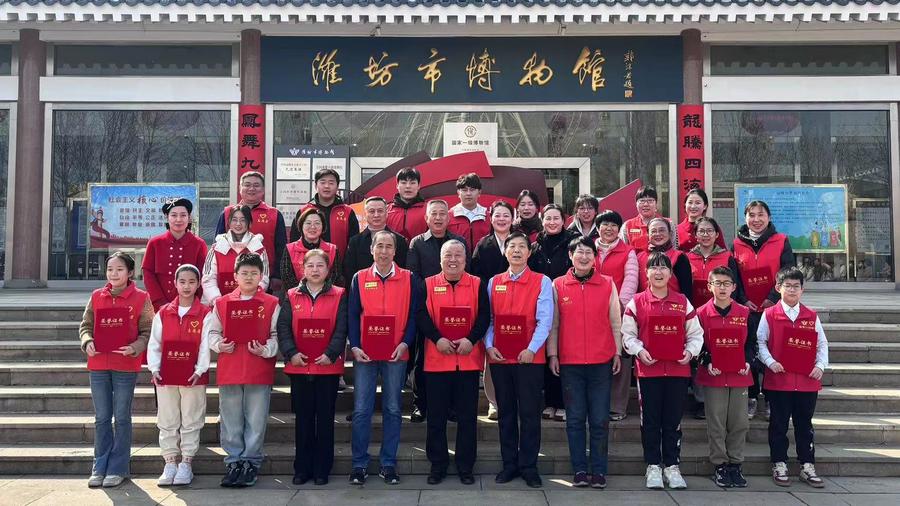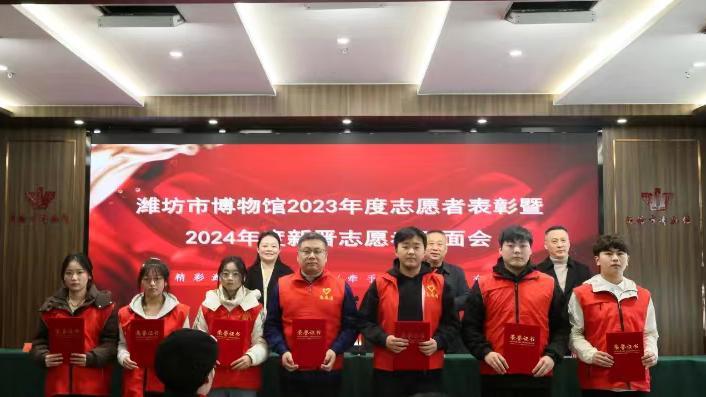 会上,潍坊市博物馆公共教育部张凯丽介绍了潍坊市博物馆志愿者团队情况,与会领导为2023年度获奖志愿者颁奖并与所有志愿者合影留念。