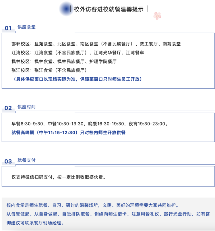 复旦大学官宣:开放食堂!校外人员加收50%搭伙费