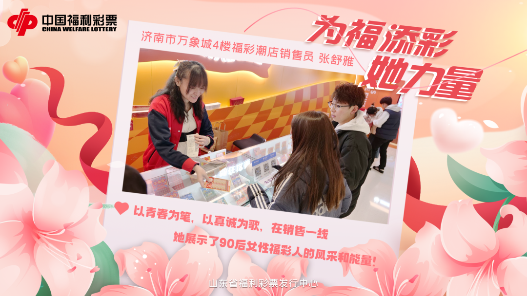 她们是铿锵玫瑰,是魅力巾帼,她们爱岗敬业、无私奉献,坚守在福彩销售最前线,用实际行动撑起最美半边天,为福彩事业发展做出贡献。“三八”妇女节来临,谨向福彩巾帼致敬,祝你们节日快乐。
