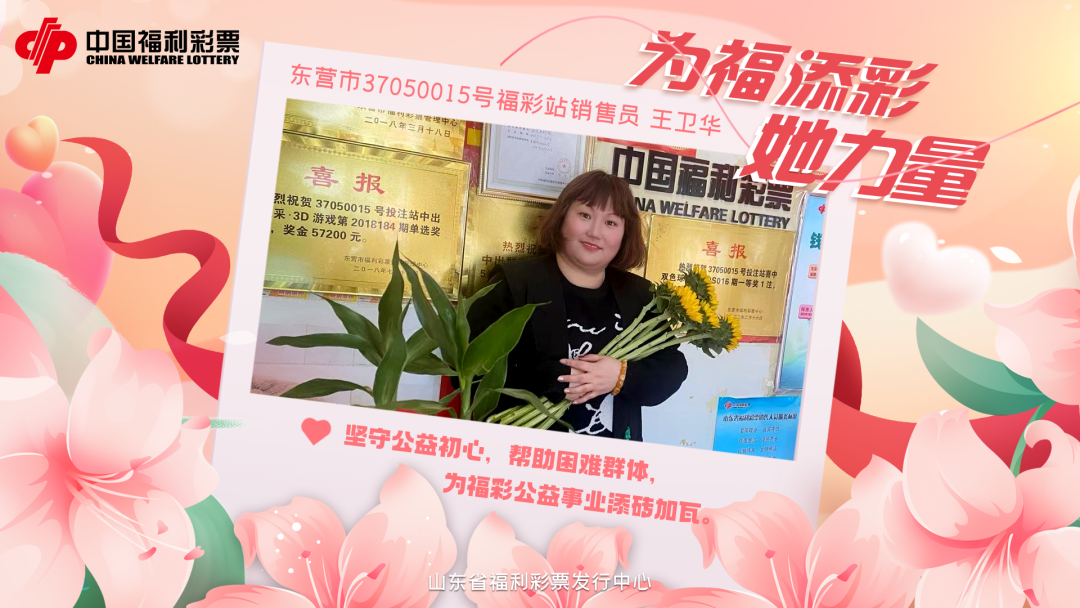 烟台市招远辖区37068536号福彩站销售员张艳梅,自2016年起从事福彩销售工作,平时勤于学习业务知识,反复观看学习视频,为方便彩友购彩,几乎全年无休,靠优质的服务赢得了彩友的信任,2023年电脑票、即开票销量都名列前茅。休市期间张艳梅踊跃参加户外卖场,在辖区的各项工作中起到了“领头羊”的作用,2024年被评为五星级福彩站,为公益事业增添巾帼力量。“她”的力量,不可估量。