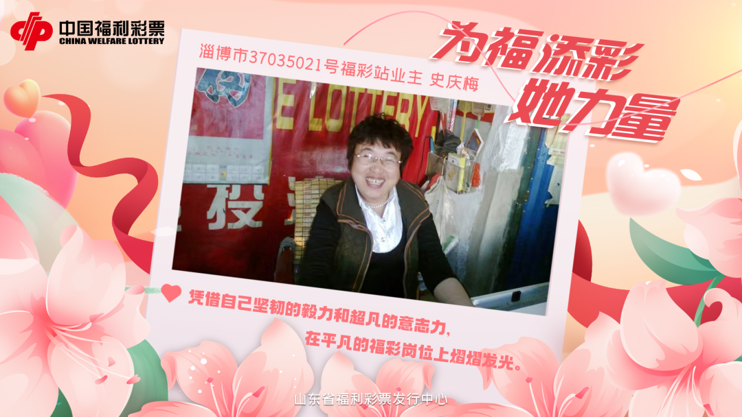 淄博市37035021号销售站业主史庆梅,患有先天小儿麻痹症和S型脊柱,每日需服用大量药物缓解病痛,然而身体的缺陷并未让史庆梅消沉,她选择坚强地笑对生活。作为淄博最早一批福彩站业主,史庆梅在福彩一线销售岗位坚守20余载,每天都以最好的状态为彩友提供最优质的服务,成为彩友们的贴心人。史庆梅常说,感谢福彩给了她一份生活的保障,只要身体允许,她将竭尽所能为福彩事业贡献自己的力量。这些年,史庆梅凭借自己坚韧的毅力和超凡的意志力,在平凡的福彩岗位上熠熠发光,彰显着巾帼女性光芒。