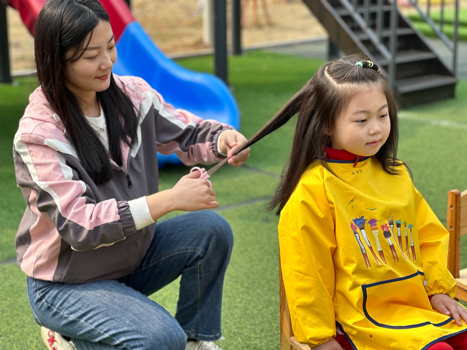 “二月二剃龙头,一年都有精神头。”承载着希望之意,教师们化身为“理发师”,为孩子们剪下二月二的一缕头发以祈好运。