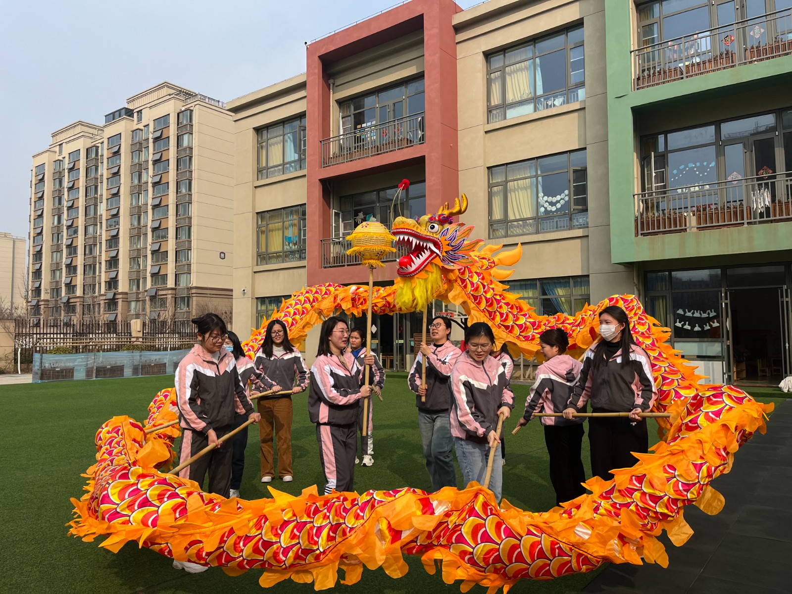 “二月二”有舞龙的习俗,老师们和孩子们上演了一场精彩的舞龙闹佳节的景象,栩栩如生的中国龙在他们手中挥舞下显得更加威武霸气,一起一伏,一屈一伸都展示着神龙的无穷意趣及神韵风采。