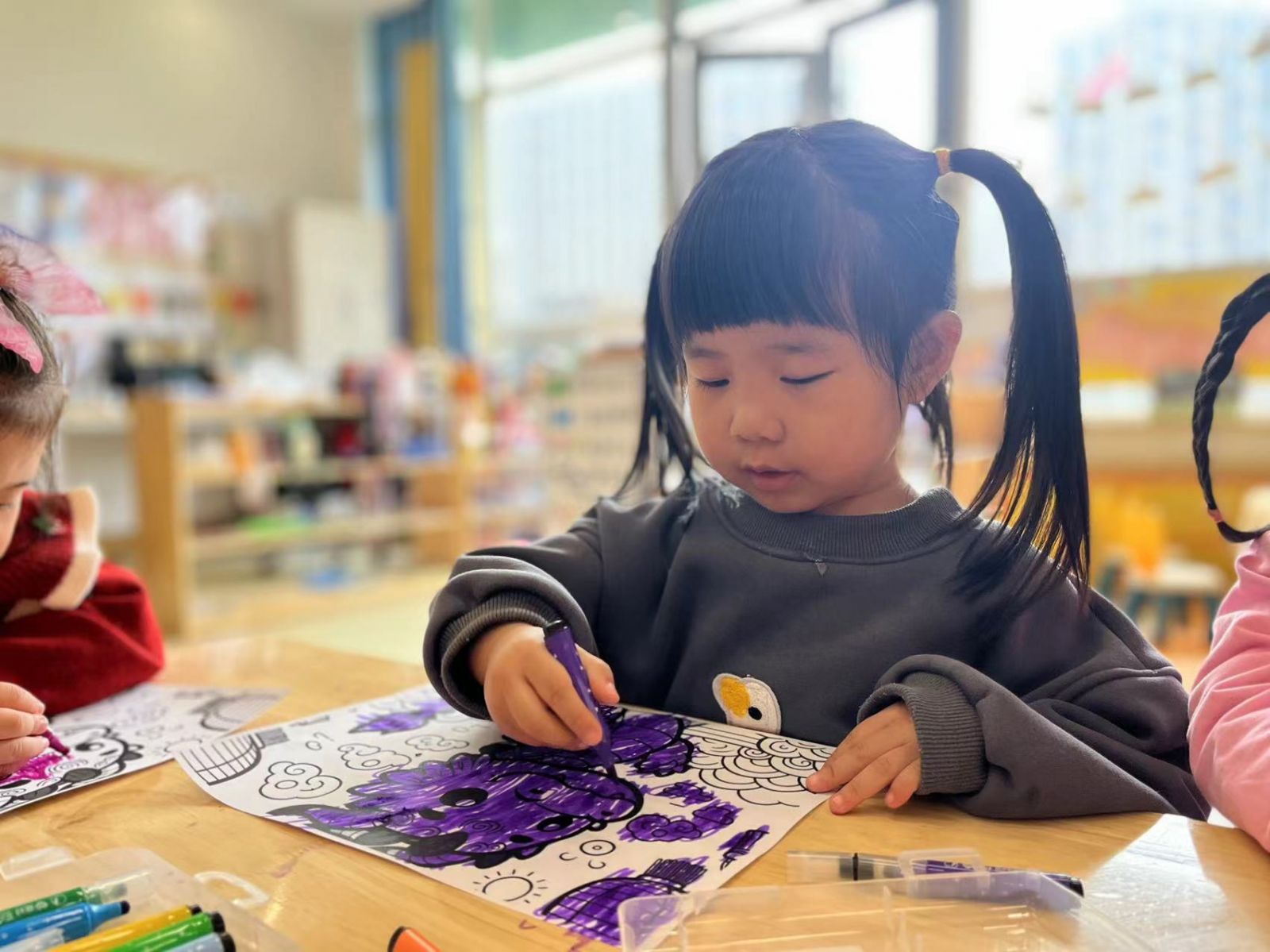 小班组的幼儿跟随老师动手完成了一条条气势磅礴的中国龙,孩子们用自己喜欢的方式表达着对龙的喜爱和敬重。