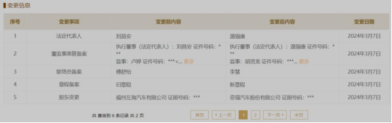 国家企业信用信息公示系统资料显示,东南汽车实控方福州青口控股有限公司(以下简称“青口控股”)发生6项工商变更。其中,奇瑞汽车股份有限公司取代福州左海汽车有限公司成为该公司的全资股东。温强康接替刘昌安,成为青口控股的法定代表人兼经理。此举意味着奇瑞汽车已成功将成立于1995年的中国知名汽车制造企业东南(福建)汽车“收入囊中”。