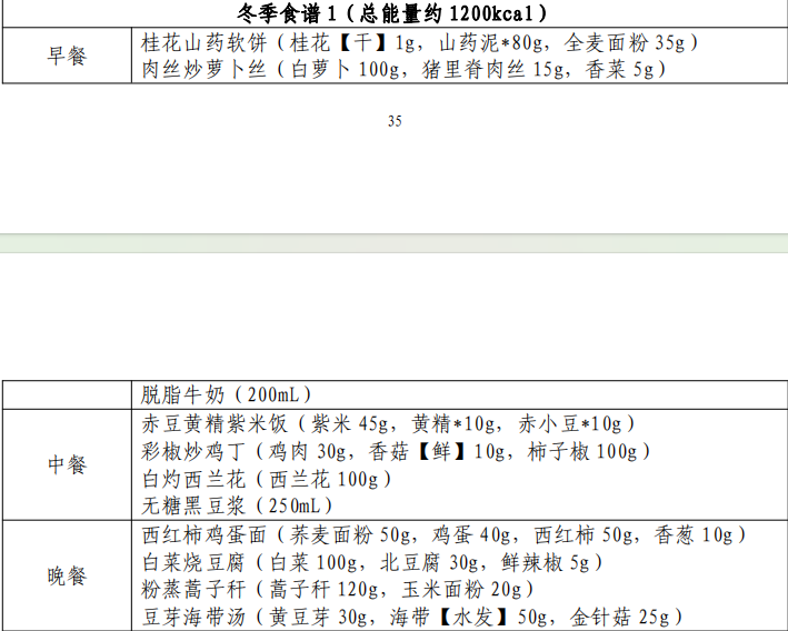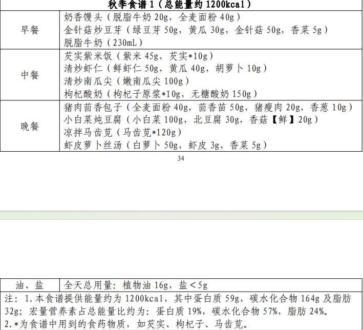 《成人肥胖食养指南(2024年版)》这份食谱细化到了全国各地区的春夏秋冬四季,并贴心地备注上了食谱的“总能量”。
