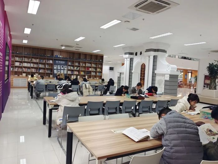 图书馆是校园文化的集中体现,是体现办学特色的育人名片。济南外国语学校图书馆独占一座楼,馆内使用面积6000余平方米,共有三层。大厅采用挑高设计,玻璃屋顶,采光充足,身在其中你能体验“光影随时间流动,读者在书海畅游”的阅读氛围。