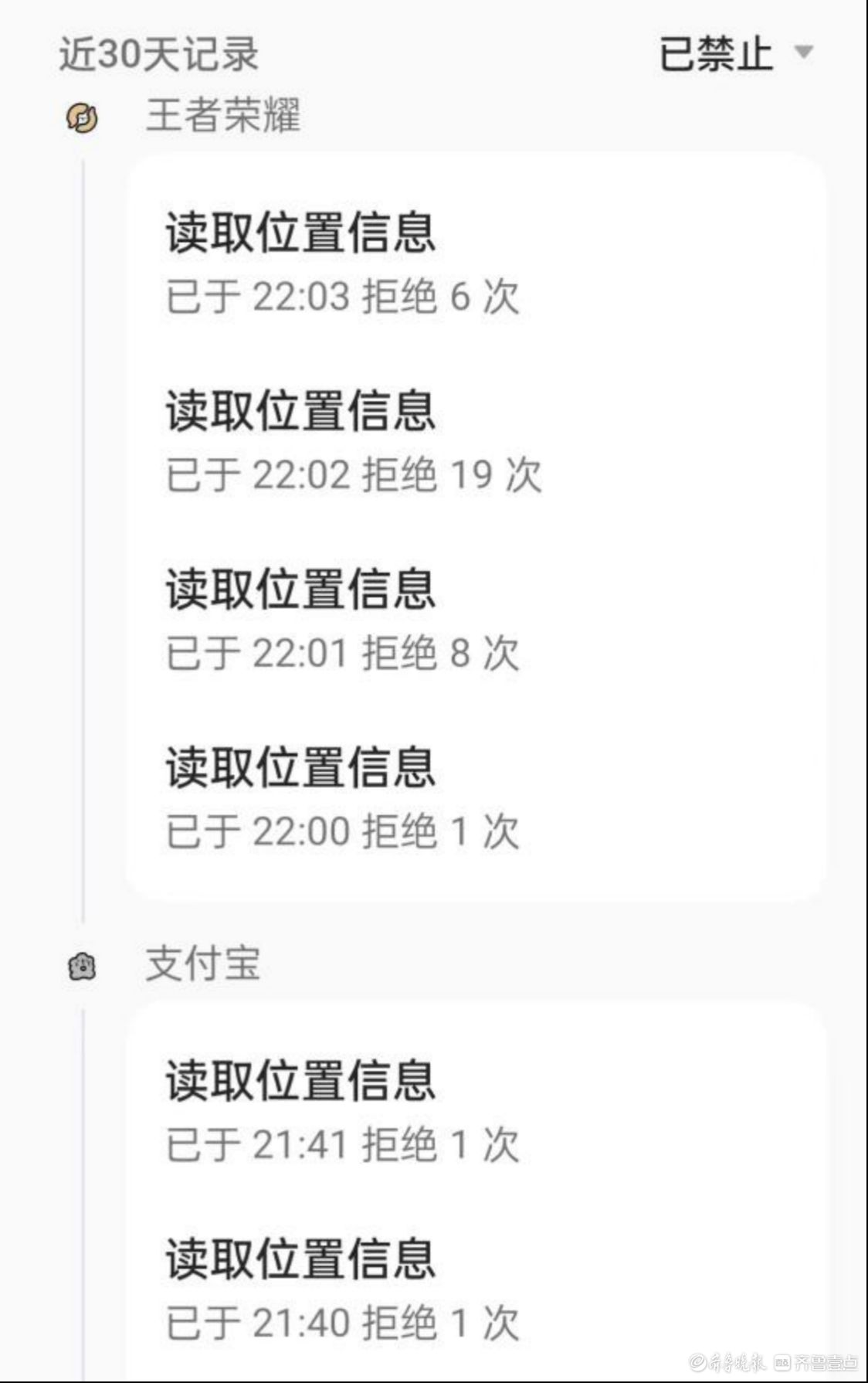 不仅如此,还有一些软件在后台不断获取用户的相关信息,市民王女士最近发现手机中有多款应用,试图在后台读取位置和应用列表等信息。比如打游戏时,某游戏APP频繁地访问自己的位置信息,甚至在关掉软件之后仍在访问。她说,之前从没发现这些应用在获取自己的隐私信息,“感觉自己在互联网上像个透明人,完全没有隐私”。