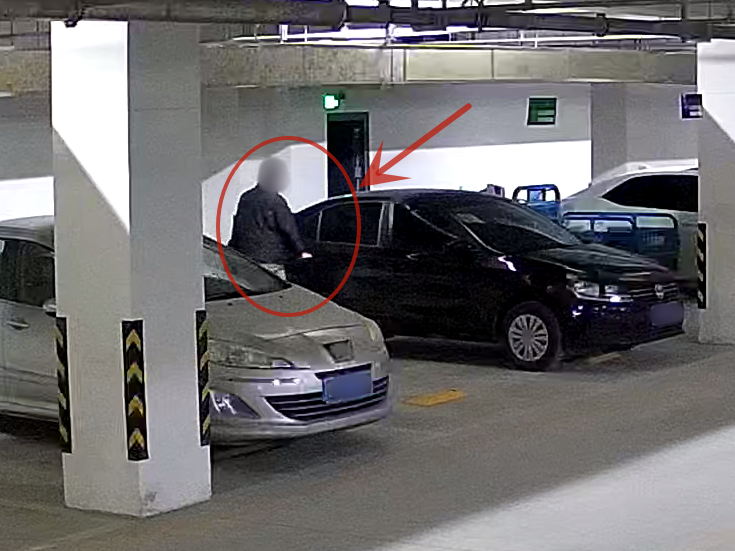 民警到达现场进行勘查,并立即调取周边监控。监控显示,夜间一名男子骑着一辆电动车出现在多个小区,环顾四周后,逐一对停放在小区内的汽车进行拉车门,盗走车内财物后骑车离开现场。