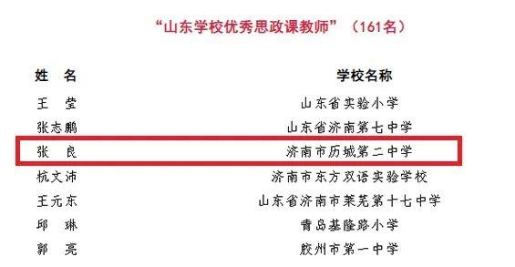 近日,山东省教育厅网站发布“山东学校优秀思政课教师”名单,经地市(高校)推荐、材料审核、专家评审、现场答辩等环节,历城二中张良老师榜上有名!