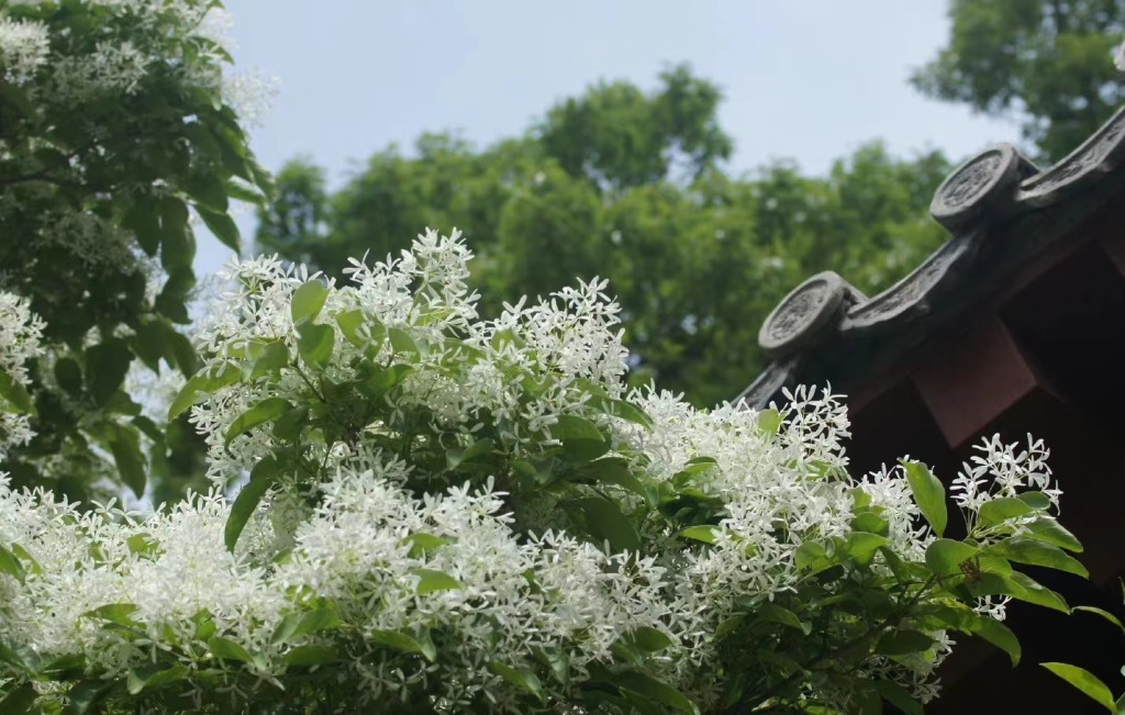 主要看点和特点:此花是华严游览区内近百年的古树之一,花初开时带绿色,后转为白色,气味清香,伞形花序如雪球累累,簇拥在椭圆形的绿叶中,让游客留连忘返。