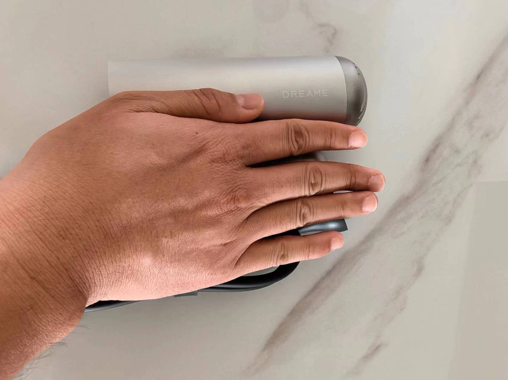 区别于市面上其他高速吹风机,追觅Pocket高速造型吹风机创新柔性折叠技术,机身可0-180度自由弯折,主机折叠起来几乎跟一个成年男性的手掌差不多大,而且手柄和风筒都是管状设计,感觉很规整,不管是放进背包还是放进行李箱,都不会很占地方,比传统的吹风机的收纳度好太多了。