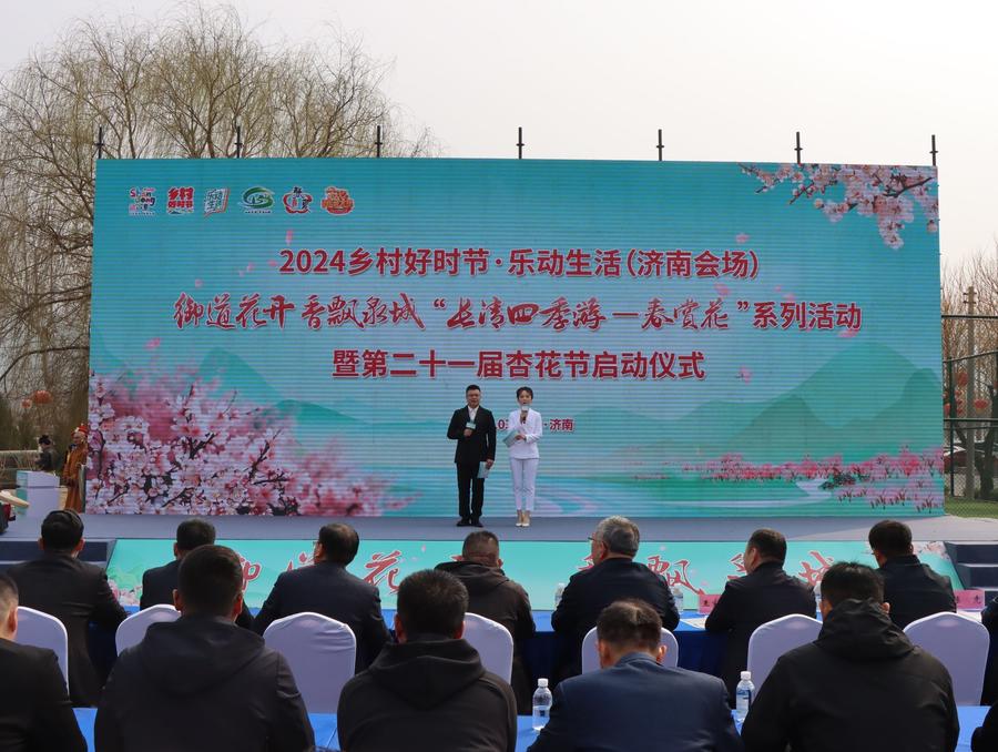 3月16日,2024“乡村好时节·乐动生活(济南会场)”“御道花开 香飘泉城”“长清四季游——春赏花”系列活动暨第二十一届杏花节启动仪式在张夏街道·金庄双龙广场举办。