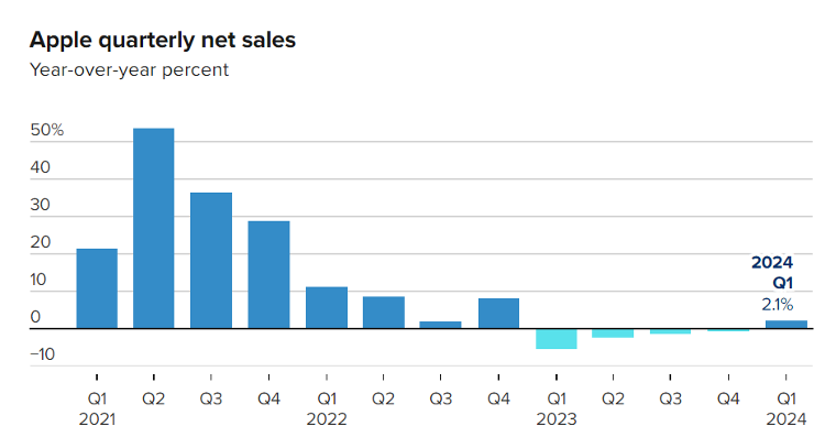 当地时间2月1日,苹果发布了2024财年一季报(即2023自然年四季度业绩)。