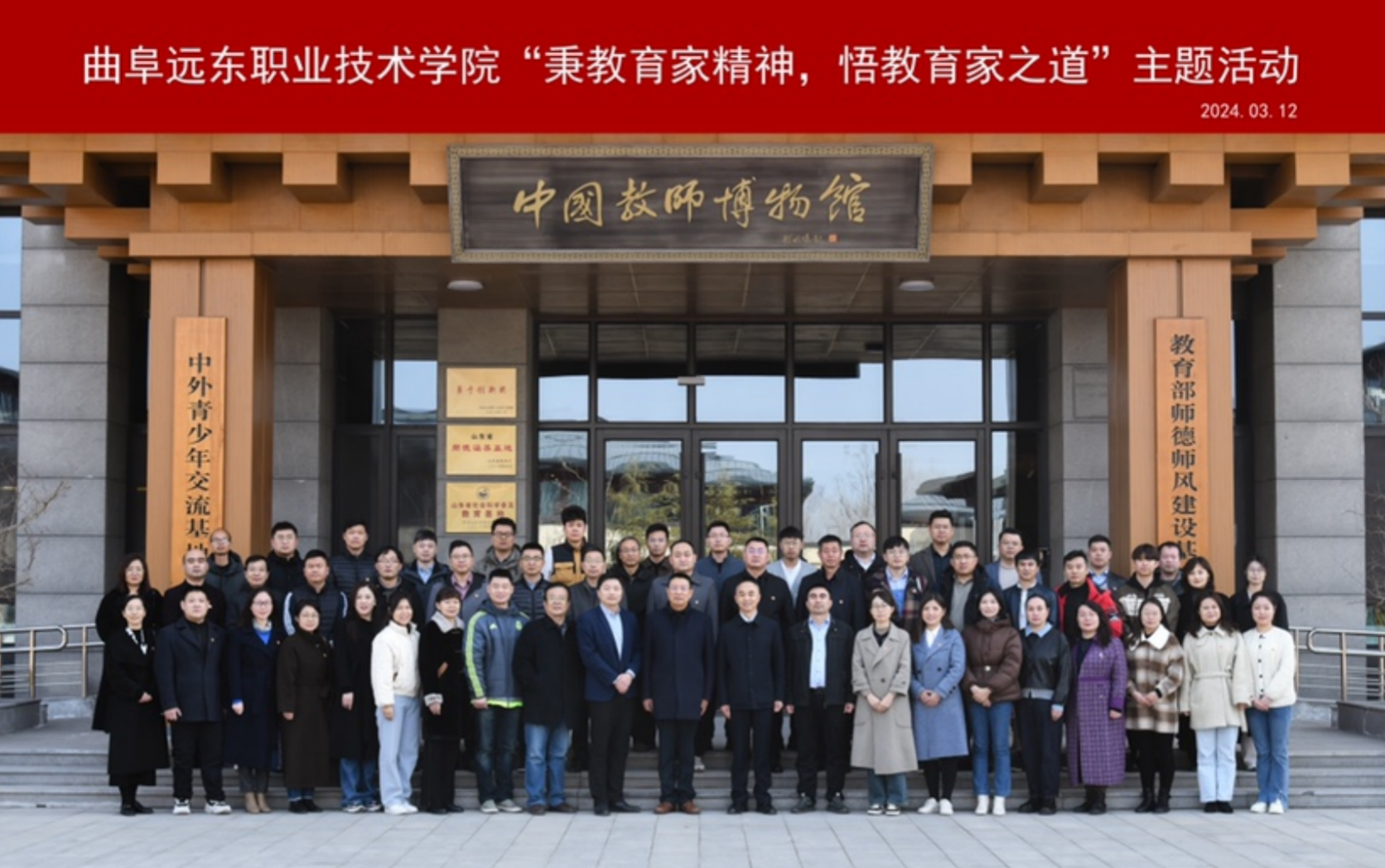 为进一步加强师德师风建设,用实际行动弘扬教育家精神,3月12日上午,曲阜远东职业技术学院党委书记带领中层及以上干部,赴曲阜师范大学——中国教师博物馆参观学习。曲阜师范大学党委常委、副校长李兆祥、中国教师博物馆副馆长刘永陪同参观。