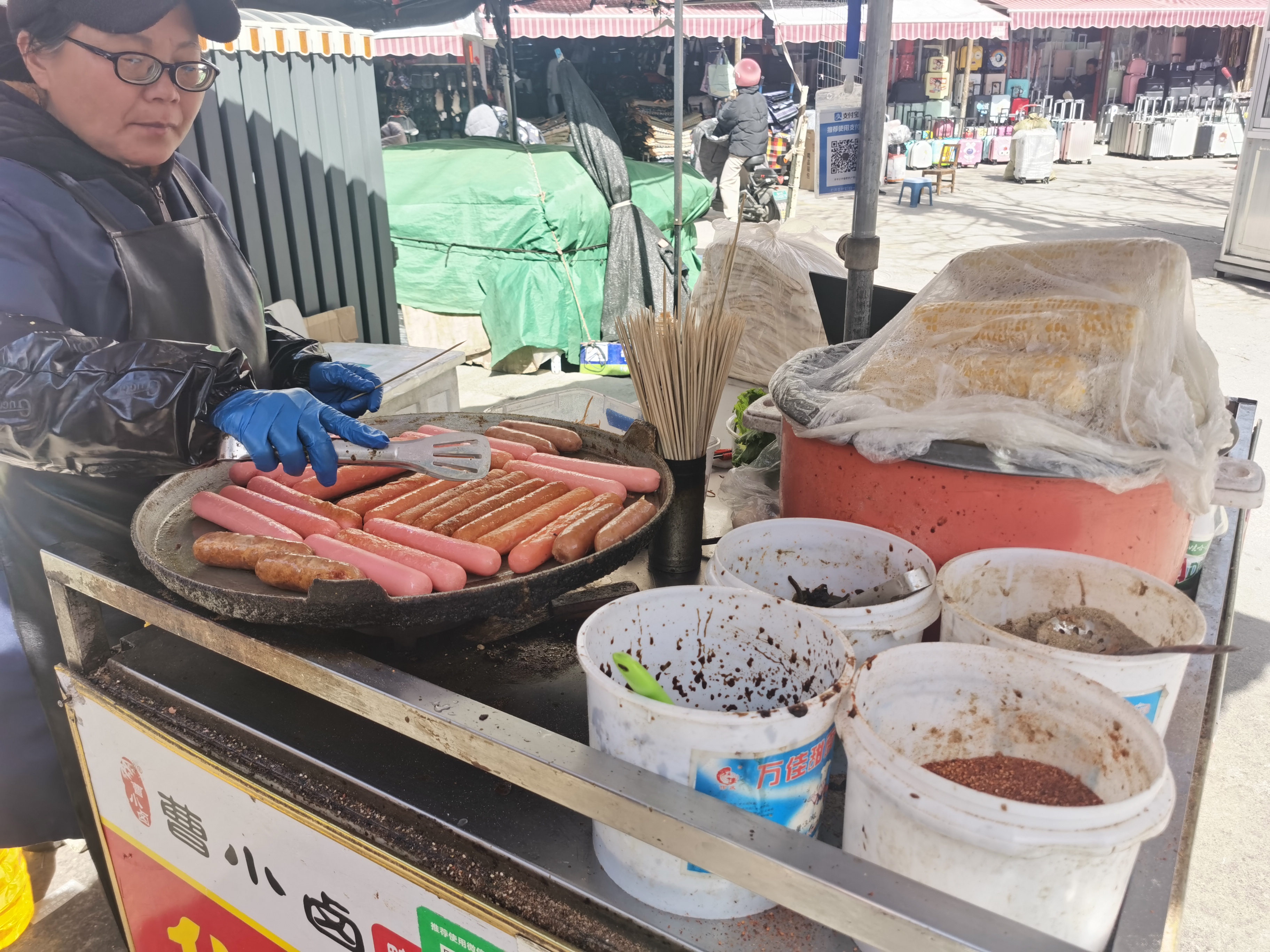 “周末两天我都没干。”在临沂市金雀山路上,一位卖淀粉肠的大娘告诉记者,平时一天能卖个七八十根,今天一上午了也就卖了十来根。