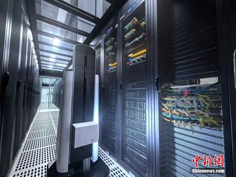 中国首个零碳数据中心——中国电信(国家)数字青海绿色大数据中心内,机器人正在机房巡检。