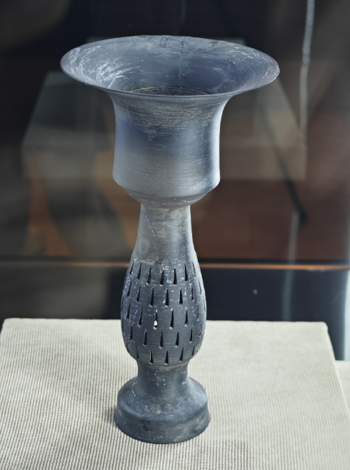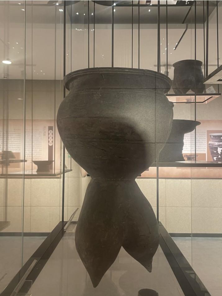 另外,城子崖遗址博物馆内,收藏着众多器型奇特、工艺精美的陶器。想知道古代人如何蒸米饭吗?馆内“呆萌”的陶甗可以给出答案。此件陶甗下方为三个空心袋状足,细腰部放置陶篦子,上方可放食物,足底添柴陶顶盖盖子,类似于蒸锅。在4000多年前龙山文化时期,先民想吃一碗热腾腾的蒸米饭已经不是件难事了!