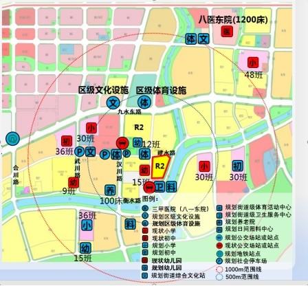 地块周边公服配套的规划和建设情况:交通:现状周边有九水东路、衡水路、汉川路、建水路。周边现状公交站点为金玉花苑站、汉川路九水东路站,线路有361路、381路、17路等公交车,出行便利;教育与医疗:现状周边有武川路幼儿园、已建成15班幼儿园,宾川路小学、武川路小学和实验初中李沧分校(南校区);现状有八医东院区(距离约1200米);规划周边有幼儿园(距离约100米)、36班小学(距离约800米)及36班初中(距离约700米);文体设施及商业:规划周边有区级文化设施(距离约500米)和区级体育设施(距离约400米);城市公园绿地:现状周边有李村河公园(距离约100米)、金水河公园(距离约200米)。