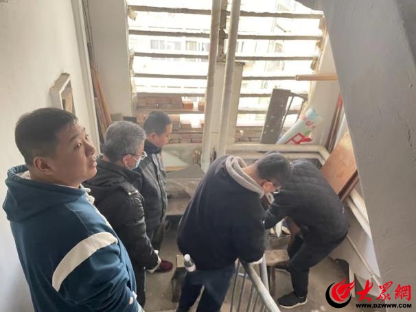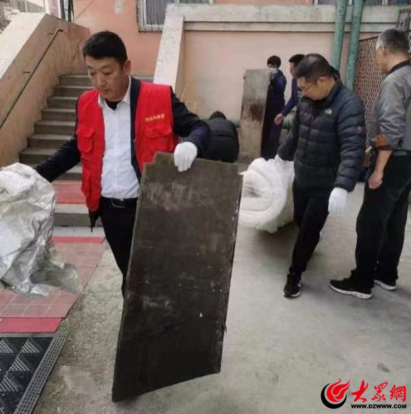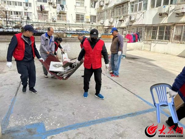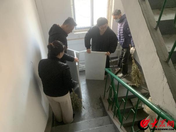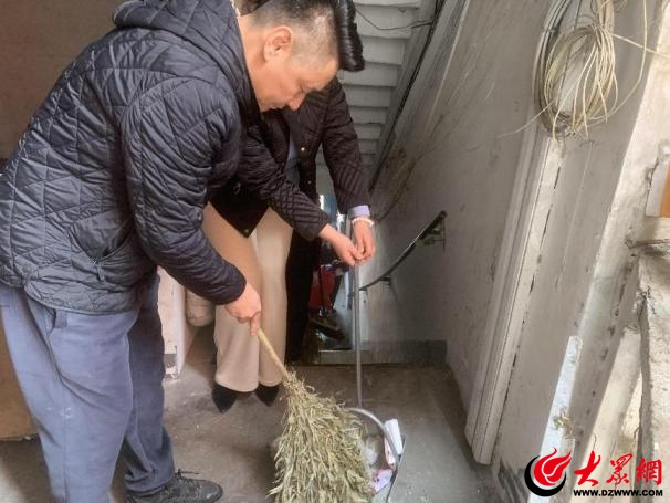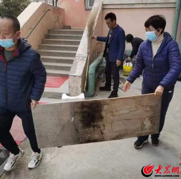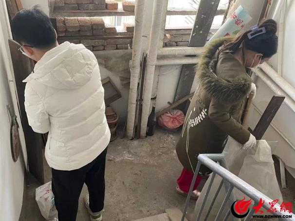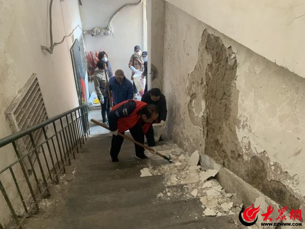 广饶路社区对广饶路29号、汤山路31号、丹山路29号楼院及楼道内的乱堆乱放杂物和脱落的墙皮进行清理。