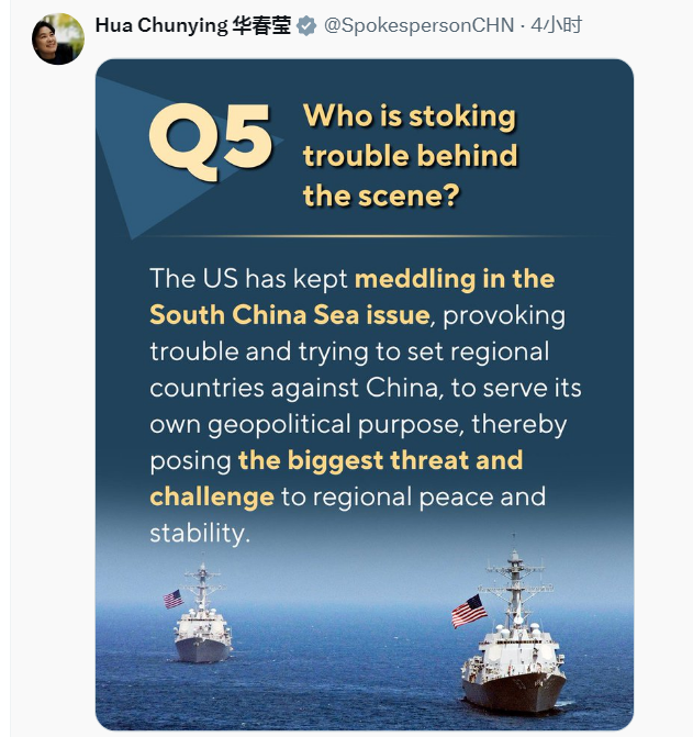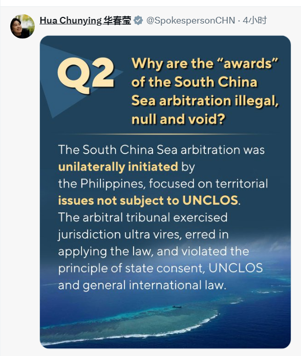2天7条!华春莹连发图文回击美菲操弄南海问题