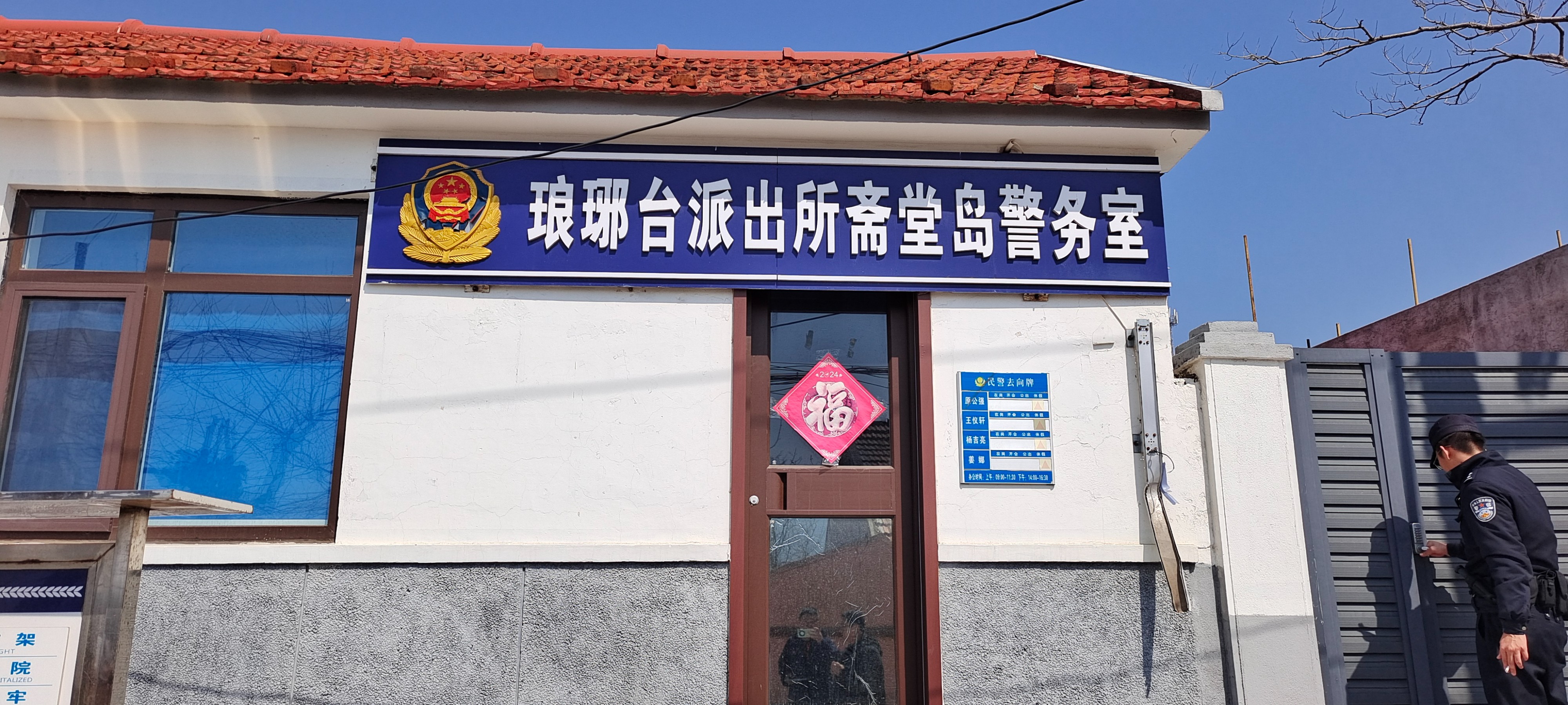 “不是有‘调解小屋’吗,警察同志们还这么辛苦跑过来干啥。”采访中,西杨家洼村的几位村民主动上前和民警交谈。顺着他们手指的方向,记者看到了位于村东北侧的一间警务室。原来,这是琅琊台派出所设立的“连心”码头服务站,专门针对码头上发生的纠纷进行就地调解。因其具有快速调解、高效解决纠纷的特点,被村民们称为“调解小屋”。