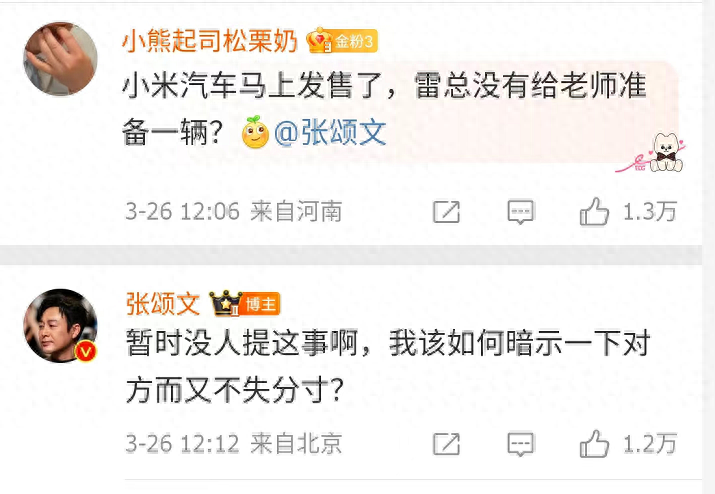 为什么在张颂文和“粉丝”互动三天之后,才有雷军回复,才上热搜呢?