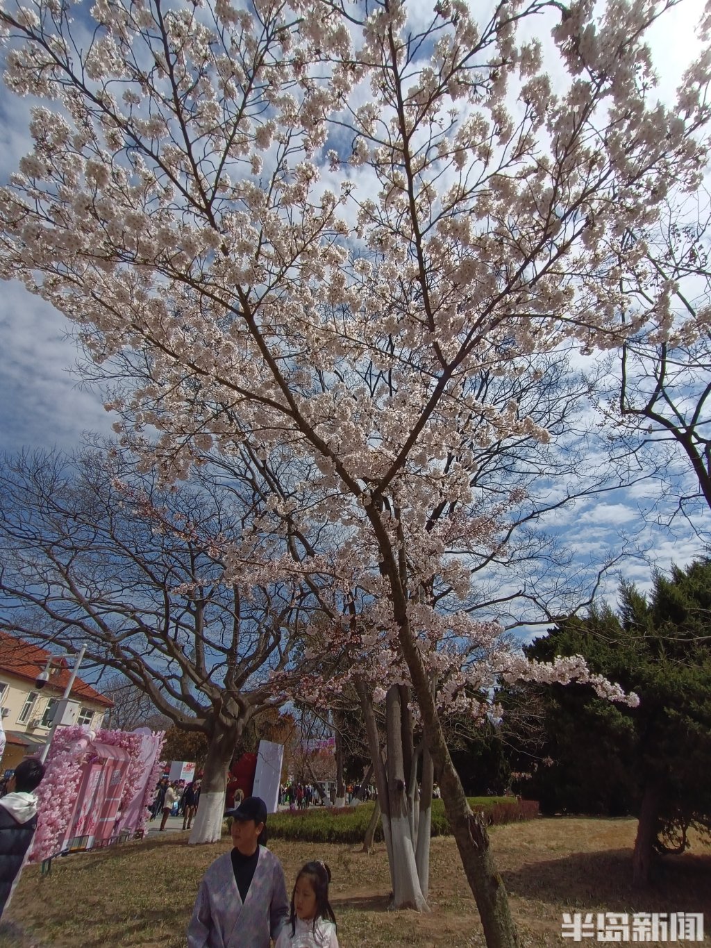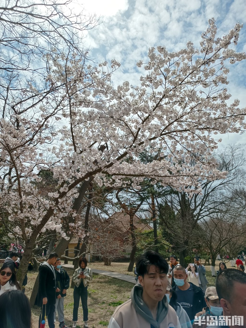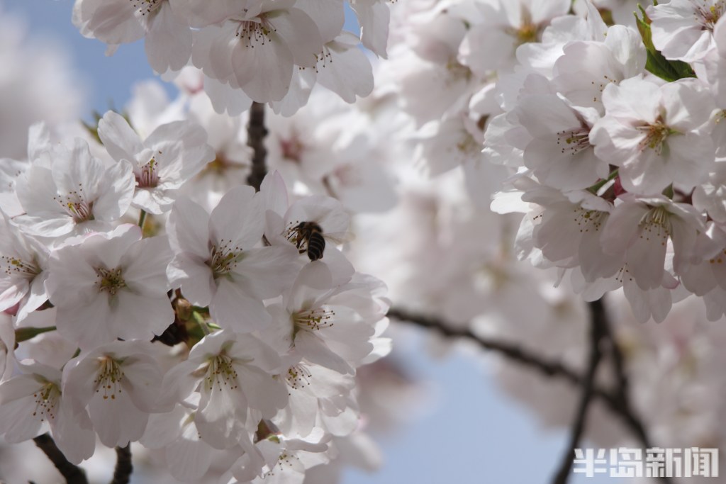 4月4日,青岛中山公园樱花初绽报春。当日是清明假日第一天,市民游客纷纷来到中山公园踏青游园。部分向阳的樱花率先绽放迎客,有一棵因为光照充足全部怒放进入盛花期,吸引很多人排队打卡拍照,成为网红樱花树。