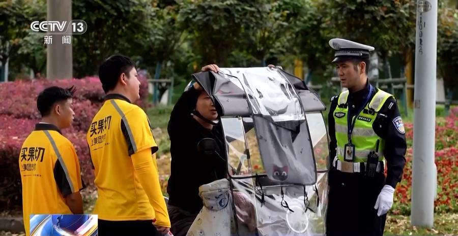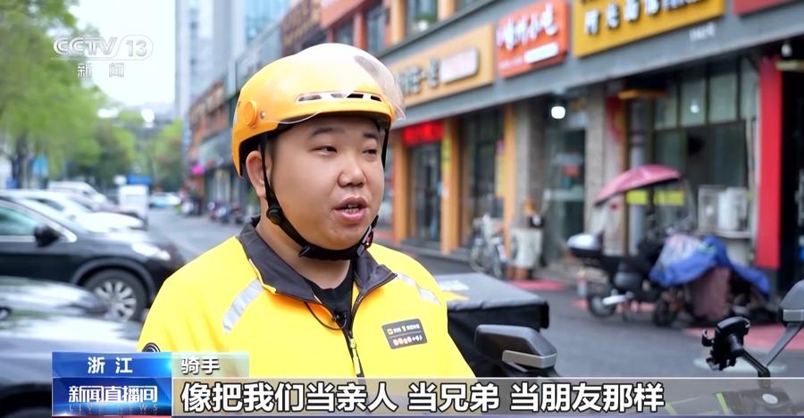 骑手:像把我们当亲人、当兄弟、当朋友那样,说话很温和,然后温声细语的,就总是跟我们强调,让我们一定要佩戴好头盔。以前我们的交通安全意识不强,可能这头盔感觉可有可无,但是他经常来帮我们讲课,所以我们的交通安全意识也就提高了,所以我们现在一直都保持头盔的佩戴。