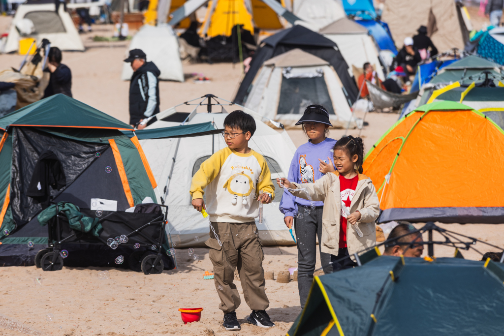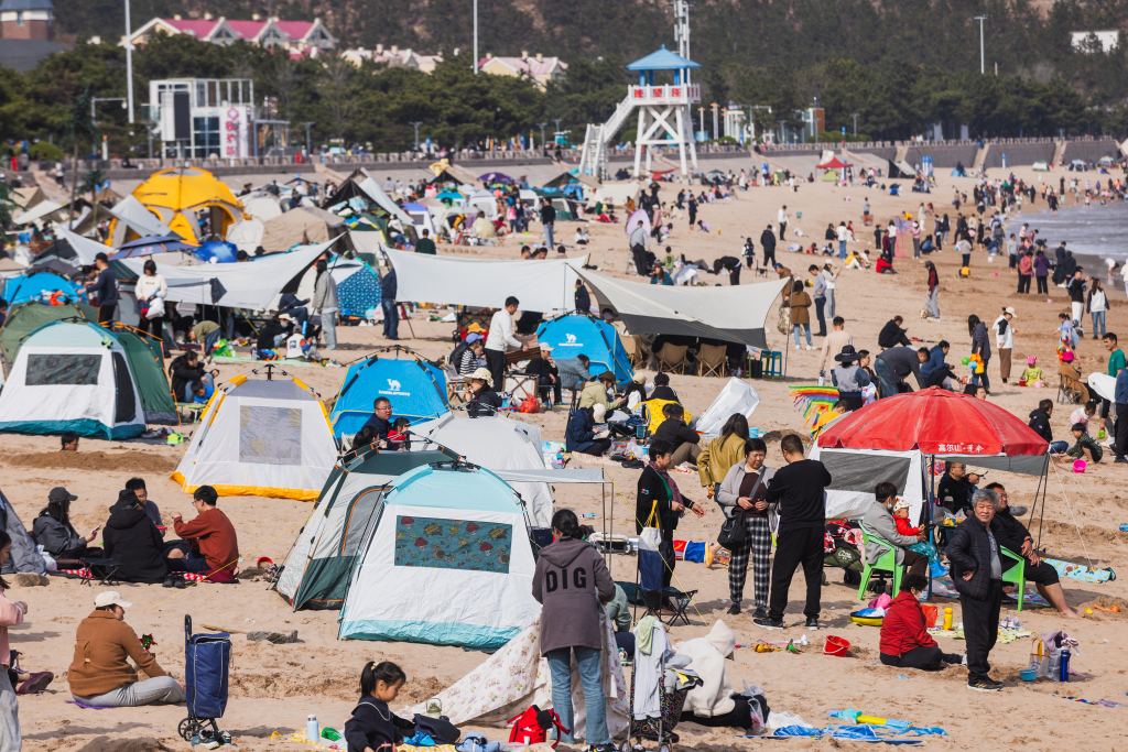 当日,记者驾车来到流清湾看到,大批自驾游客人拥入风景秀丽的湾区,停车场密密麻麻停满了车辆。海滩上游客众多,帐篷星星点点构成了一道彩色的风景。不少游客表示,本以为近郊海滩客流较少,没想到流清湾公园如此火爆,流量真是堪比一浴、石老人浴场等传统海滨景区。
