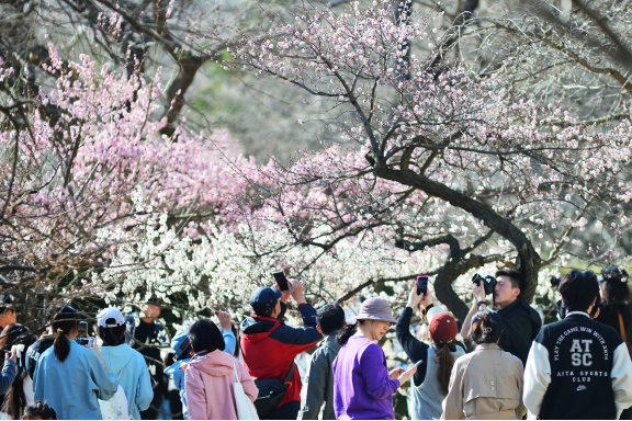 3月30日,青岛市中山公园,各色花儿竞相盛开,吸引众多游客踏青打卡。(新华社发)